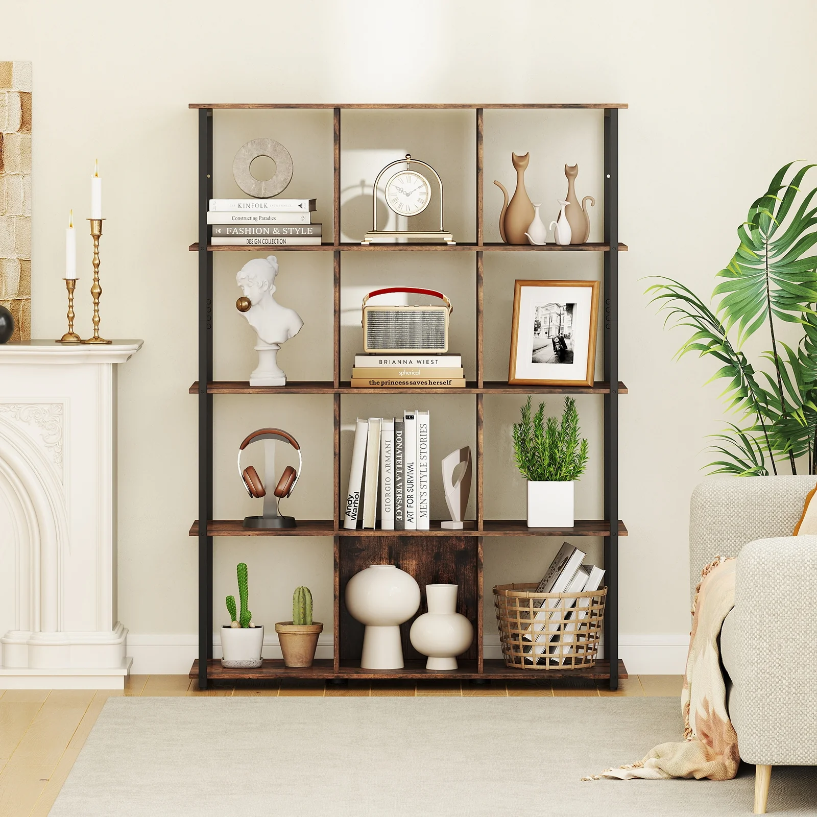 Transform your home organization with this stylish 12-cube bookshelf, offering versatile storage and display for books, decor, and more. Its sturdy metal frame, rustic wood finish, and safety features provide a durable, attractive solution for any room.