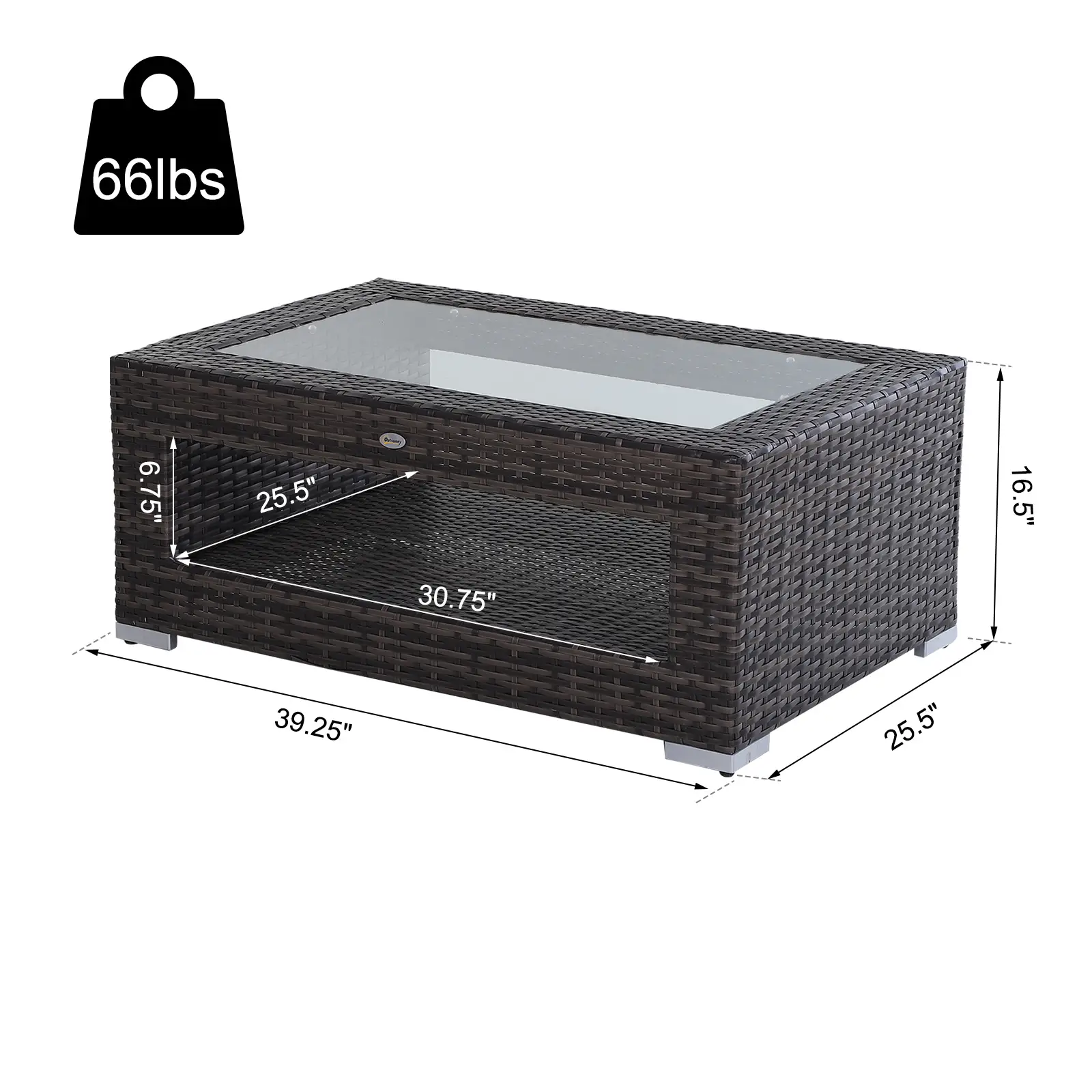- Lower Shelf Size: 30.75"W x 25.5"L x 6.75"H (78.11cm x 64.77cm x 17.15cm)