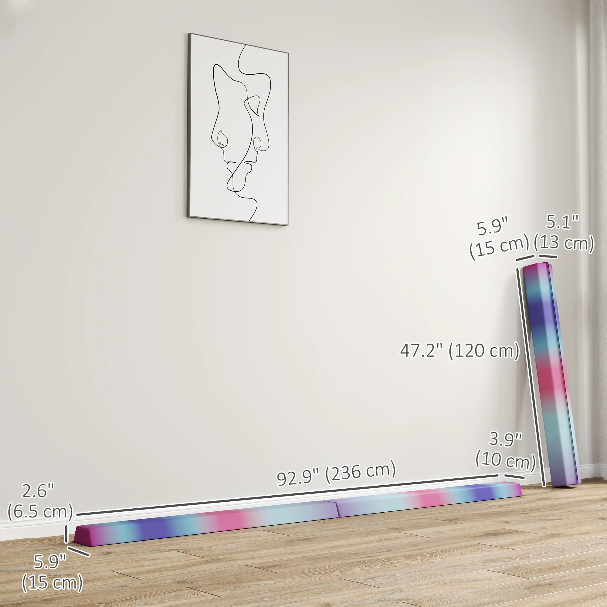 7.7ft Folding Balance Beam, Gymnastics Equipment, Anti-Slip, Multicolour
