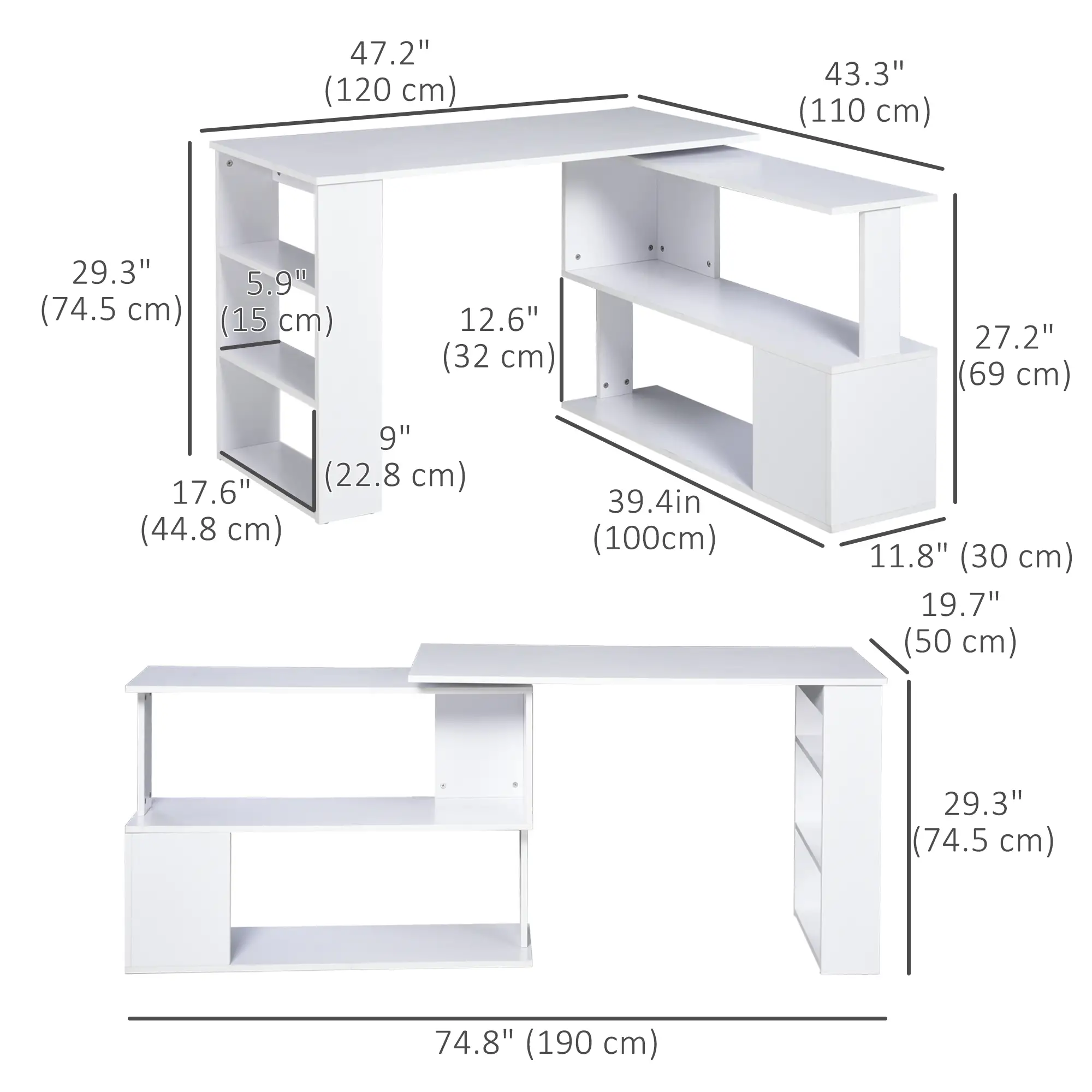 L Shaped Desk, 360° Rotating Corner, Computer Writing Table, White