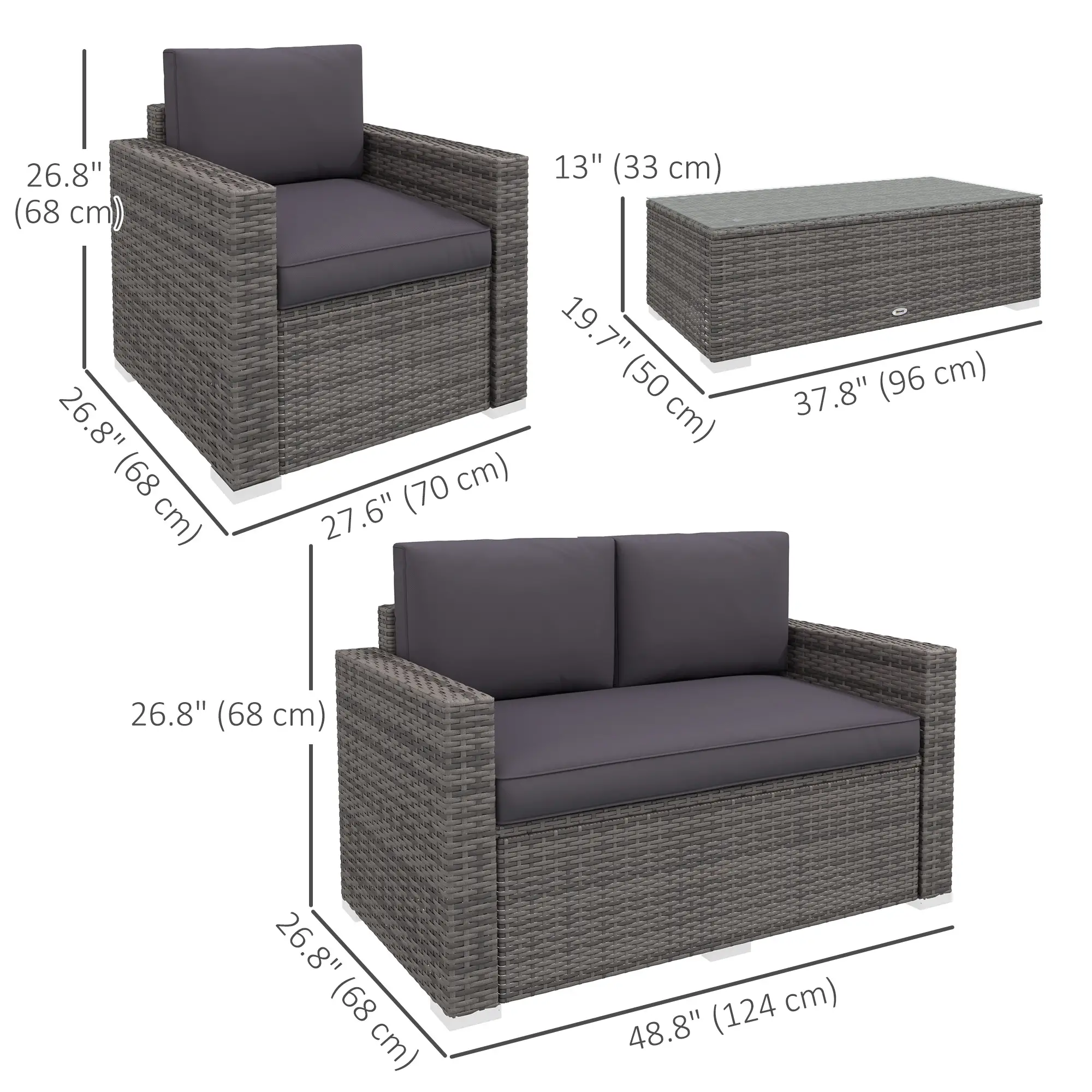 - Double Sofa Dimension: 48.75"W x 26.75"D x 26.75"H (123.8cm x 68cm x 68cm)