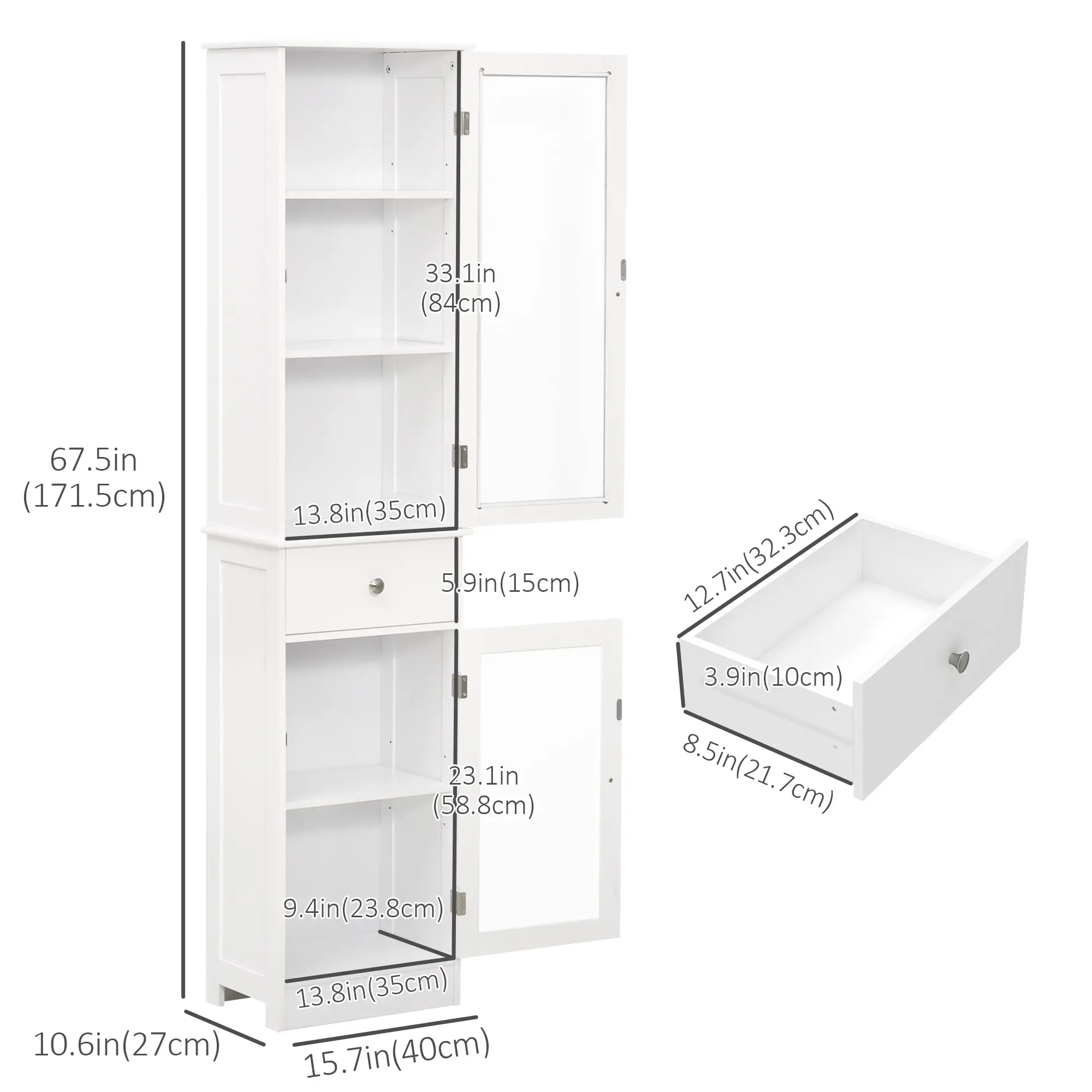 Tall Bathroom Storage Cabinet, 2 Doors, Adjustable Shelves, White