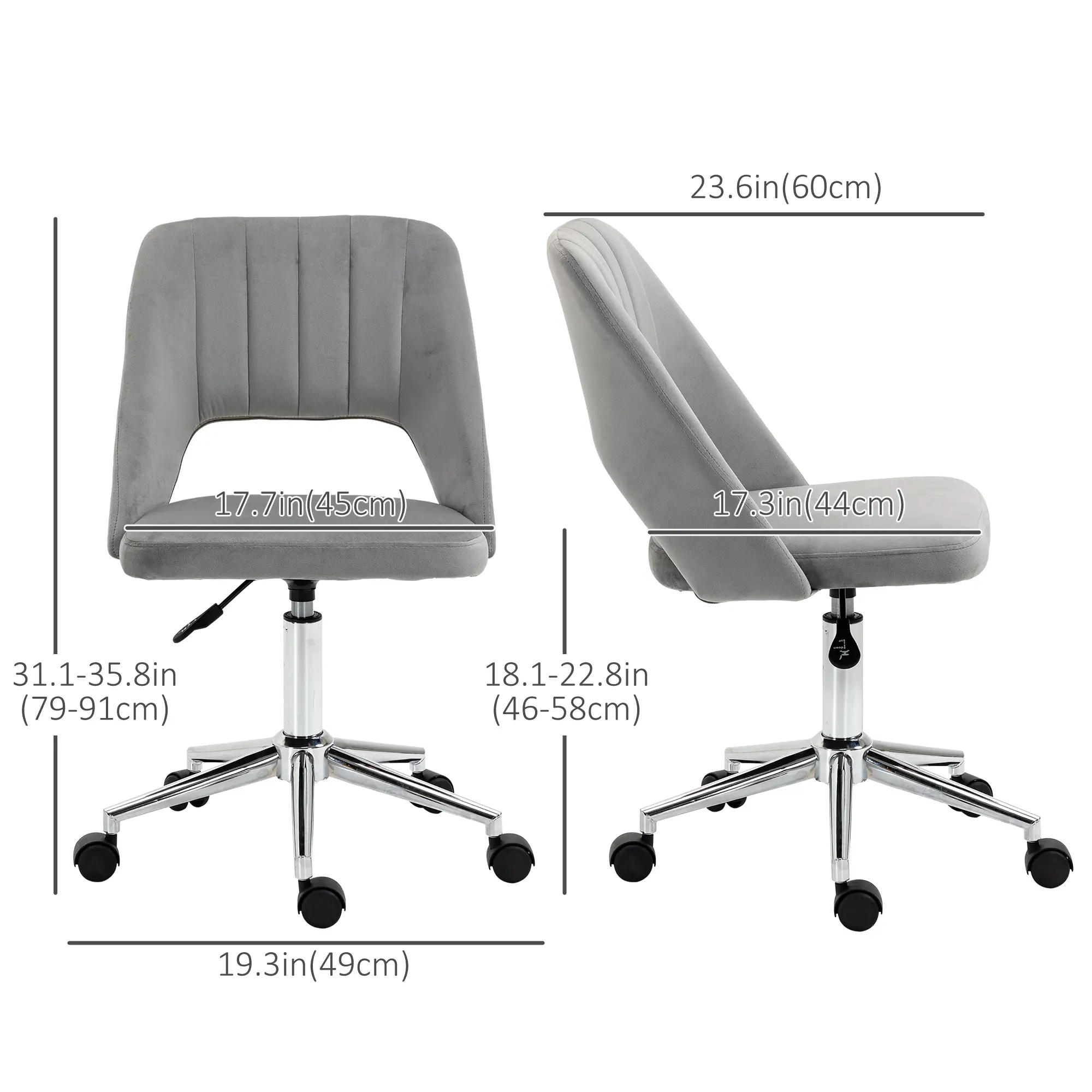Velvet Swivel Office Chair, Scallop Back, Grey